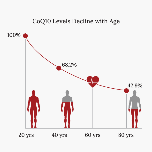CoQ10 is a key player in the production of ATP, the substance that makes energy for your cells, particularly the heart. It’s also a powerful antioxidant, which supports the antioxidation of the "bad" LDL cholesterol and helps protect against atherosclerosis. However, the production of CoQ10 declines with age and medications such as statins[1].